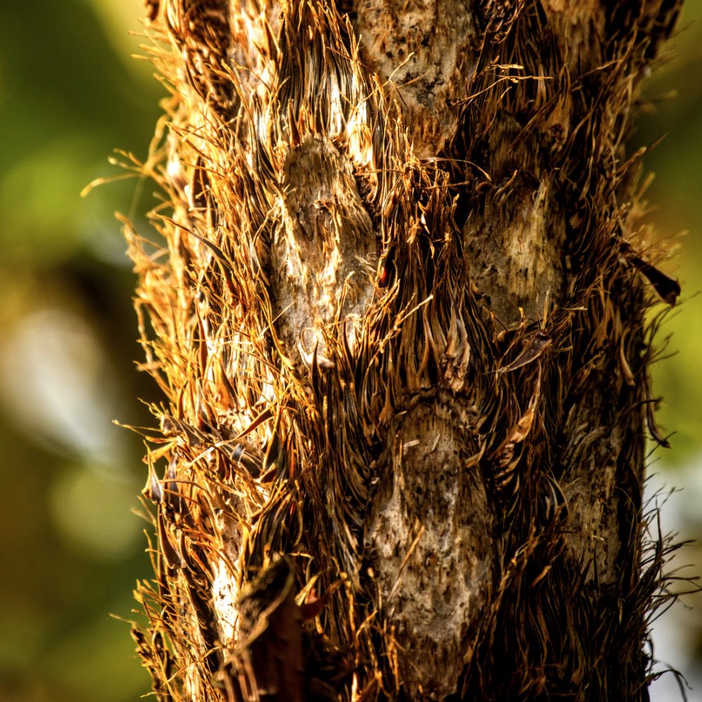 - Estructura del Tronco: Fuste erecto, a menudo ramificado en la parte superior, cubierto con bases peciolares persistentes.